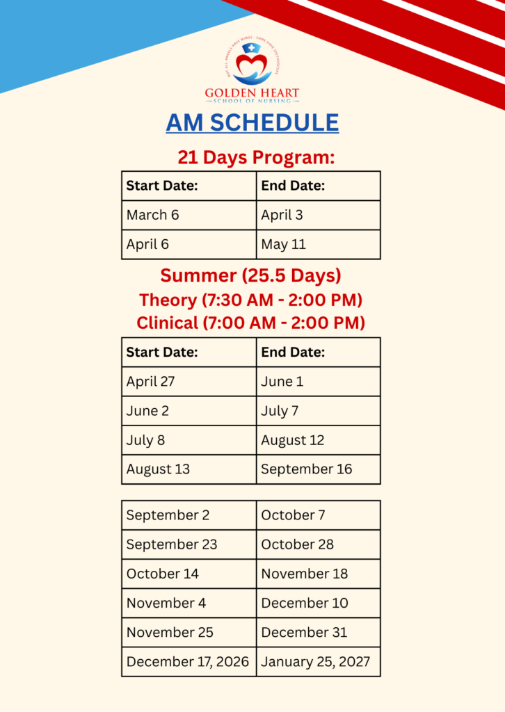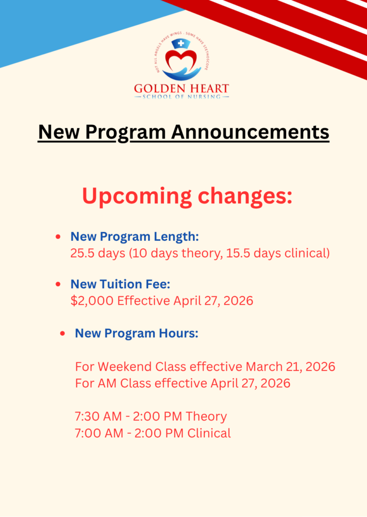 Golden Heart School of Nursing is a prestigious school for Nurse Assistant Training Program (NATP) or Certified Nurse Assistant (CNA) program, located in 5671 Santa Teresa Blvd. Suite 212 San Jose California. We offer courses and programs to train, refine, and guide compassionate nurse assistants for 21 days. In order to uphold, as well as protect, the agenda of excellent patient care, our mission is to enhance and maintain high quality education through in-campus classes, on-hand skills, and on-site clinical training. By promoting a school with both a friendly environment and well grounded, respectable members, we create a hospitable culture for all. Our instructors are well informed, resourceful, experienced, and helpful individuals, prepared to guide and lead. It is our passion to aid those who seek assistance, whether it be by accommodating suitable jobs, or training their “Golden Hearts,” to accentuate their potentials. Compassion is our foundation, and touching hearts is our motive at Golden Heart School of Nursing.